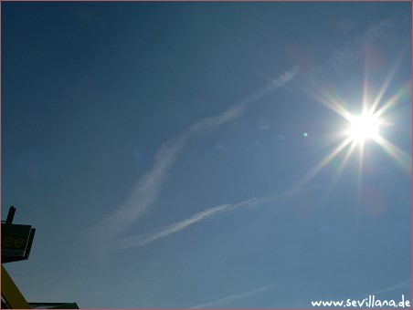Der Himmel am 10.6. (auf einigen Fotos sind bunte Farbflecken zu sehen, das sind Linsenspiegelungen, weil ich oft sehr nah an der Sonne fotografiere): Viel Blau und permanent weiße Schleier, aus denen immer mal wieder Wolkengebilde entstanden. Auf dem 1. Foto in der 2.  Reihe ist mir einmal mehr  die hellblaue Färbung im unmittelbaren Sonnenbereich aufgefallen.