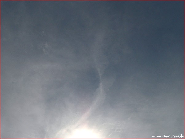 Und last but  not least: Weit und breit gab es hier heute keine einzige Wolke natürlichen Ursprungs. Was bedeutet, natürlicherweise hätte  heute wie schon an so vielen Tagen reiner blauer sonniger Himmel über uns gestrahlt.