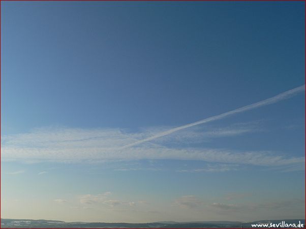 Neben den Chemtrail-Flügen waren übrigens heute auffallend viele Flieger zu sehen, die in den gleichen Höhen ganz ohne Schweif unterwegs waren. Das nur mal wieder als Hinweis für die ewigen Zweifler und hartnäckigen Leugner, Flugzeugstreifen seien eben doch reine Kondensstreifen. Von wegen.