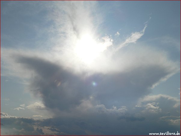 Das Drückende von gestern war heute verschwunden, die Wärme ist geblieben, die Schleier vor der Sonne natürlich auch. Im Augenblick fotografiere ich ziemlich viele Wolkengebilde, der Grund: Dieser Himmel ist ein typischer "HAARP"-Himmel. Eine verstärkte HAARP-Einwirkung hatte ich vor einigen Wochen schon wahrgenommen, inzwischen ist es auch an den Wolken selbst nicht mehr zu übersehen. Die Wolken weisen mehr als sonst die typischen Strukturen auf, die durch künstliche elektromagnetische Aufladung