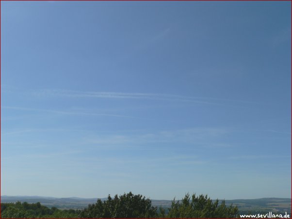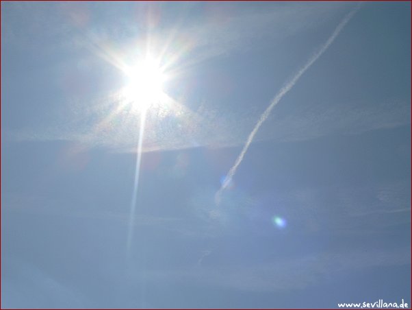 Noch wärmer - knapp 32°C - viele Chemtrails und Sonnenlichtabblendung durch Schleierbildung daraus.