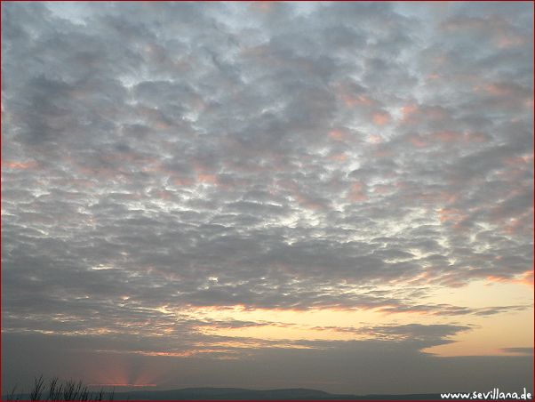 Nach einer sternenklaren Nacht nahmen am Morgen die Chemtrailer wieder ihre Arbeit auf, zum Teil paarweise nebeneinander, und deckten den Himmel mit Schwadenstreifen weiträumig zu. Bild 1 und 2 sind von 8:30 h, da war noch etwas Blau zu sehen, später nicht mehr. Diese Decke schob sich weg, als die Sonne unterging, jetzt ist der Himmel wieder sternenklar, mit ein paar wenigen Wolken, die sich von der Form deutlich von den Schwadengebilden unterscheiden.