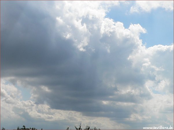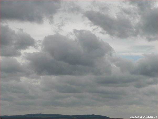 auch keine dunkelgrauen Wolken mit fetzenartig ausgefranstem Rand, die ebenfalls sehr häufig zu sehen sind ...