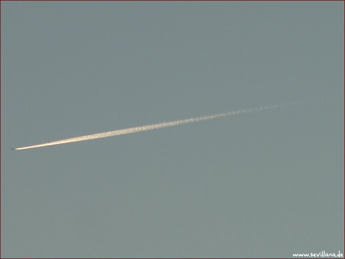 Schon die Tatsache, dass es beobachtbar (!) an allen 365 Tagen des Jahres sichtbare Flugzeugschweife gibt, bringt einen ins Grübeln. So dürfte es aufgrund der aktuellen Wetterlage gemäß der physikalischen Gesetze diese Schweife überhaupt nicht geben, wenn es denn reine Kondensstreifen wären. Die Luft während des Tages ist zur Zeit »knochentrocken, die derzeitige »Wetterlage nennt sich "Hoch" mit dem Namen "Sepideh". (Siehe hierzu auch einen »früheren Artikel.)