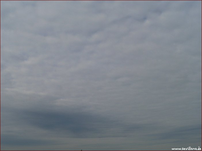 Kein Regen mehr, wieder ein bisschen wärmer und mehr Sonne, allerdings in keinem Moment ungefiltert. Viele dicke Wolkenbänke, die manchmal eine zweite Wokenschicht darüber in deutlicher Rippenstruktur sichtbar werden ließen (Foto 7), und Chemtrails, die sämtliche Wolkenlücken in Schleierhimmel verwandelten und auch Wolken ausbildeten. Erklärtes Ziel schien wieder zu sein, alle Sonnenwärme und alles Sonnenlicht zuzudecken.