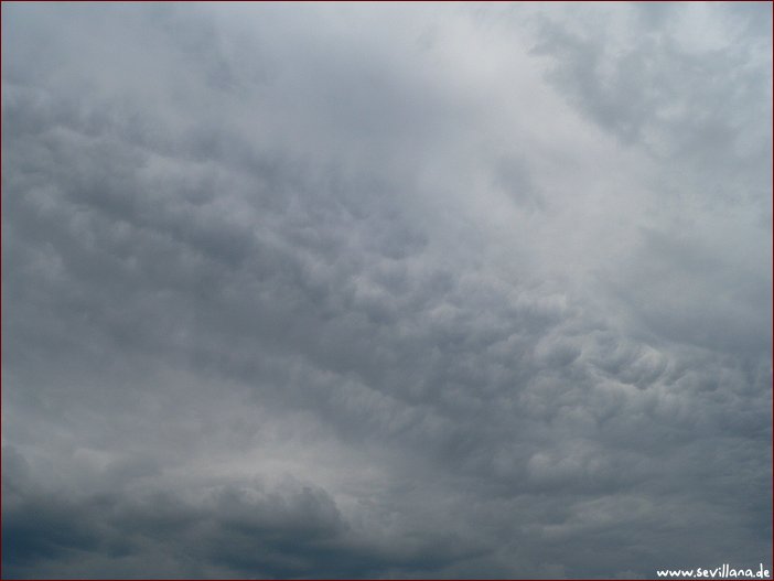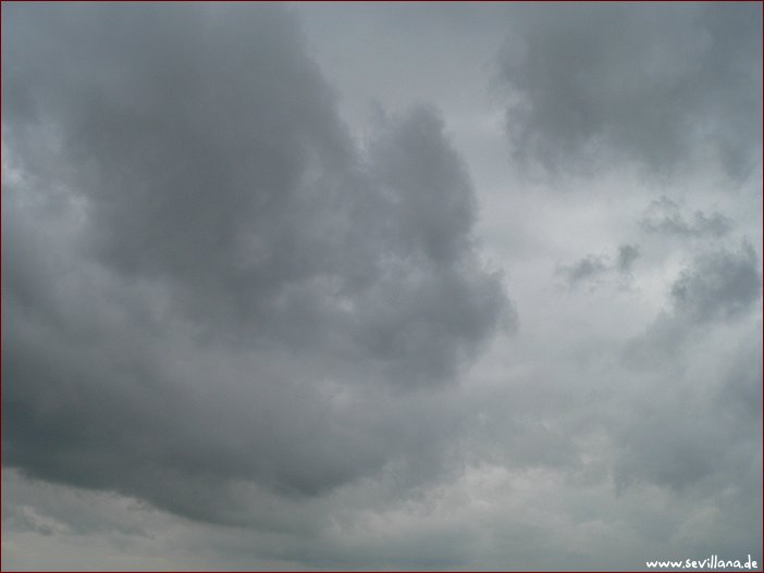 Von morgens bis abends dunkel und grau mit kranken Wolkengebilden, von denen natürlicherweise kein einziges vorkommen dürfte. Am Nachmittag etwas Regen aus tief hängenden strukturlosen nebligen Gebilden, am Abend wieder Regen, der noch anhält, gegen Sonnenuntergang ungewöhnliche, seltsame Lichtverhältnisse.