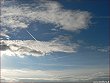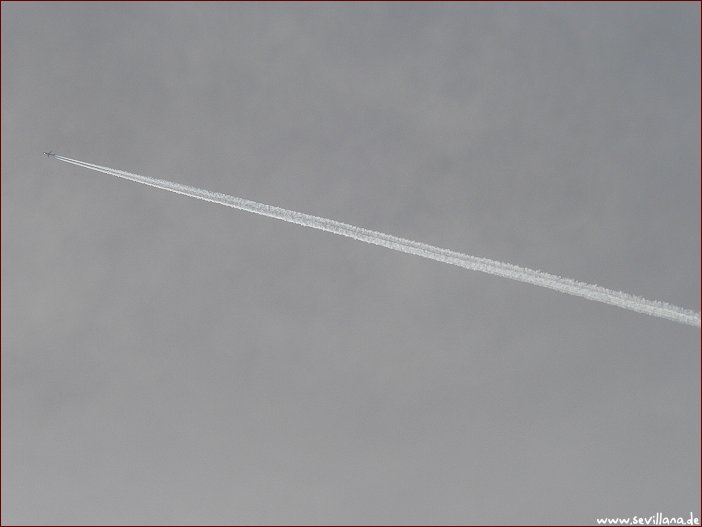 Grau, kalt und trüb mit einigen Sonnenlichtblicken für wenige Minuten und mit vielen Wolken im künstlichen Format und Struktur, viele Streifenbänke, kastenartige Wolken, Bänke mit schnurgeraden Unterkanten, Chemtrails in den Wolkenlücken. Abgesehen von in letzter Zeit immer wieder auffallenden leicht bräunlichen Nuancen, die man auf vielen Fotos findet, fielen heute auch deutlich bläulich getönte Wolken auf (Foto 9). Am Abend wurde der Himmel weitgehend wolkenfrei.