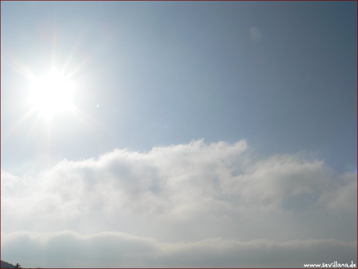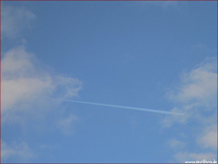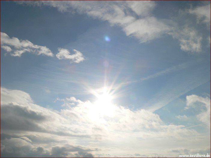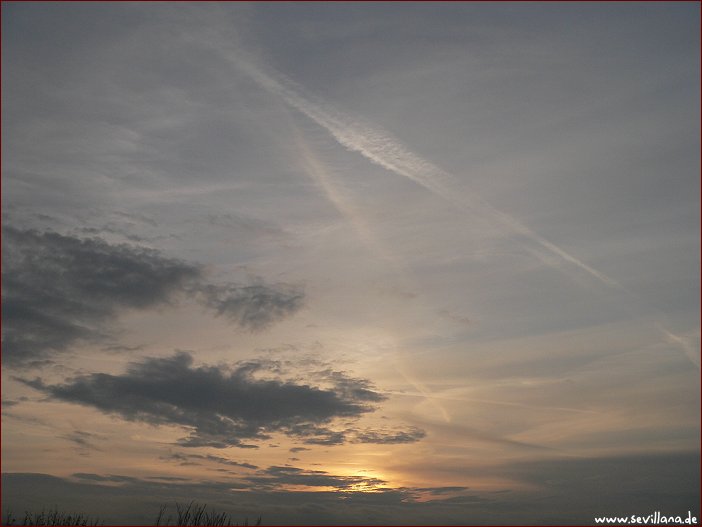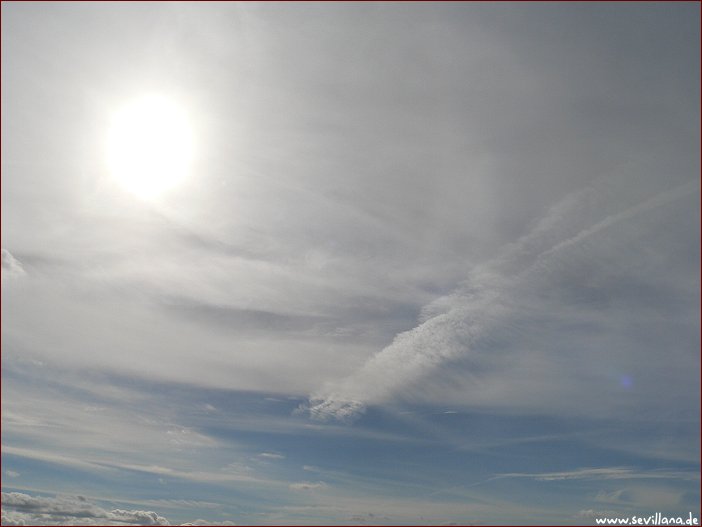 Zuerst grau, später aufgelockert mit verwaschenen Wolken, verschleiertem Hintergrund und jeder Menge Chemtrails, die dem hervorkommenden Blau und der Sonne sogleich wieder den Garaus machten.