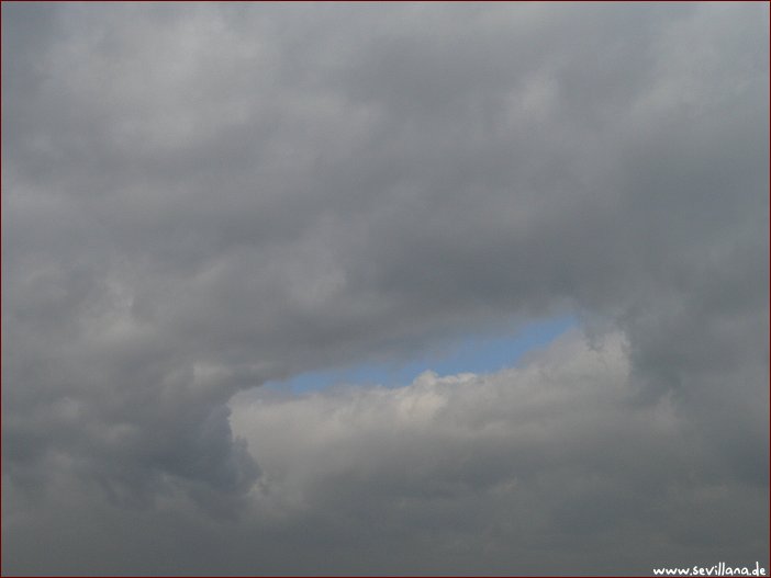 Abwechselnd Wolken und blauer Himmel, kein Regen mehr. Trotz Auflockerung hatte die Sonne wenig Chancen, wirksame Wärme zu erzeugen - sie war immer abgedeckt teils mit dunkelgrauen Wolken und teils durch Schleier. Chemtrail-Flieger habe ich erst am späten Nachmittag einige gesehen, die Filterschicht in der Höhe war jedoch vorhanden, teilweise bildeten sich daraus wolkenartige, etwas dickere Schleier. Man beachte auch die braunen Wolken auf Foto 9. Die Gestalt der Wolken heute war teils wieder skurril - viereckige Wolken, viereckige Fenster, scharfe Kanten und andere lustige Sachen.