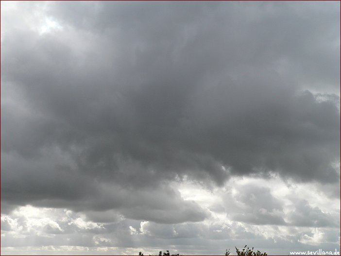 Starker Wind und wechselhafter Himmel - mal völlig bedeckt mit dunkelgrauen Wolken, mal aufgelockert mit Blick auf die Wolken- und Schleierschichten darüber in größeren Höhen. Nur wenig Sonne und ungesunde unnatürliche Wolkenstrukturen.