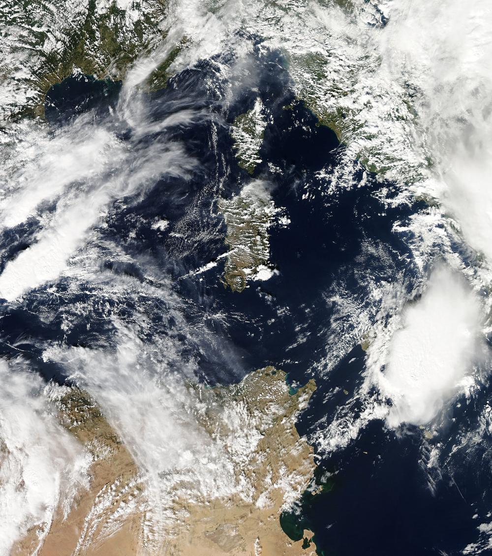 Künstliche Wolkenproduktion, wohin man auch schaut. Unglaubliche Wolkenerzeugung fällt heute über dem Mittelmeer auf. Was in der Nacht an Chemtrails über Europa geflogen wurde, zeigt Sat-Bild 7 von ca. 3 Uhr.