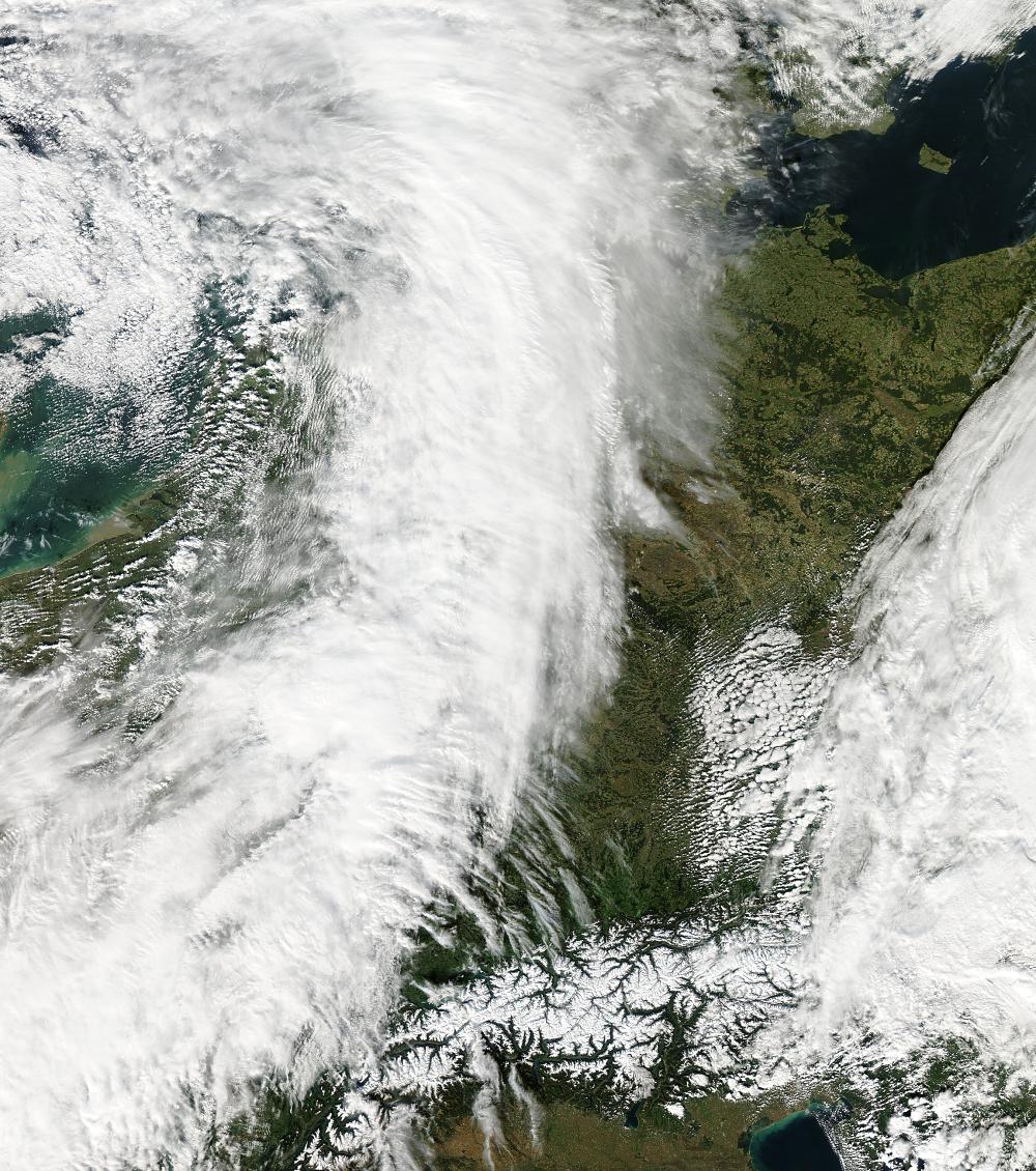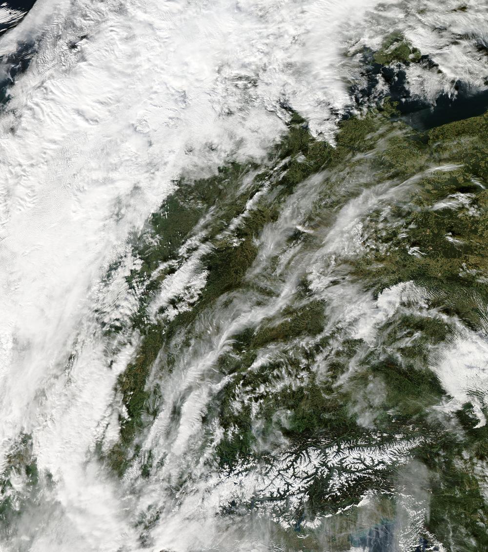 Satellitenbilder Europa mit den heutigen Wettermanipulationserscheinungen: