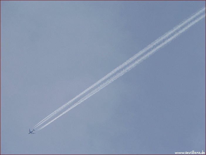 Deutlich angenehmere Temperaturen und ausgesprochen freundlich und hell. Den Tag über war die Sonne hauptsächlich gefiltert mit dicken Schleiern, die sich vor der Sonne zum Teil in Wolken entwickelten, am späten Nachmittag lag die Sonne etwas freier. Chemtrails, die die Basis-Filterschicht aufrecht erhielten, waren jede Menge unterwegs, dabei viele in extrem dicken und schnell in die Breite wachsenden Arten. Viele waren auch im Doppelpack unterwegs, mit mehr oder weniger Abstand voneinander. Die beiden auf Foto 18 sind dieselben wie auf Foto 17 oben rechts.