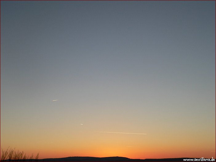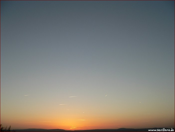 Die vergangene Nacht war wieder sternenklar bis heute morgen, als neue Wolken in den bekannten missgebildeten Strukturen aufzogen und die Sonne weitgehend zudeckten. Am frühen Nachmittag nahm die Wolkenbedeckung stark ab, für eine gute Stunde schien die Sonne hell und heiß, eine Filterschicht blieb jedoch und wurde im Laufe des Nachmittags weiter von Chemtrailern - dicke, dünne, lange, kurze, hellblaue - gefüttert. Das Ergebnis war deutliche Verblassung der Sonne, bis zum Sonnenuntergang war sie wieder nur ein verwaschenes Licht.