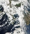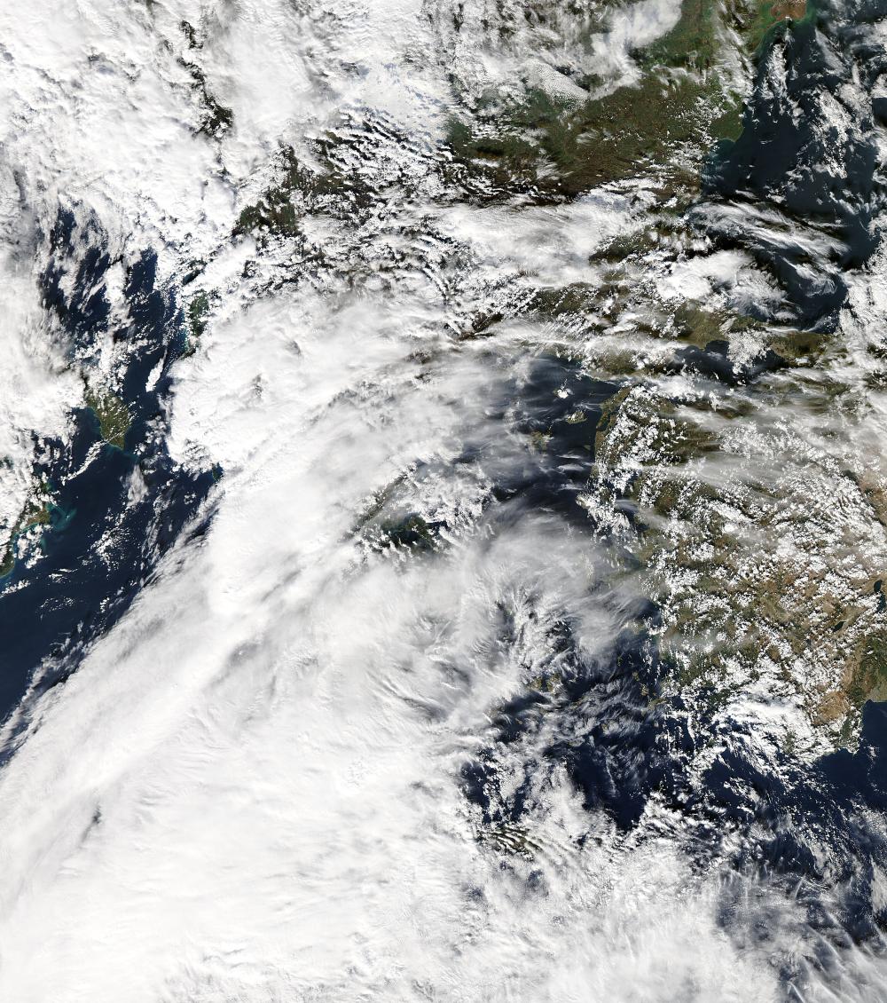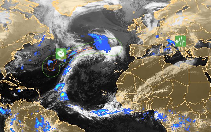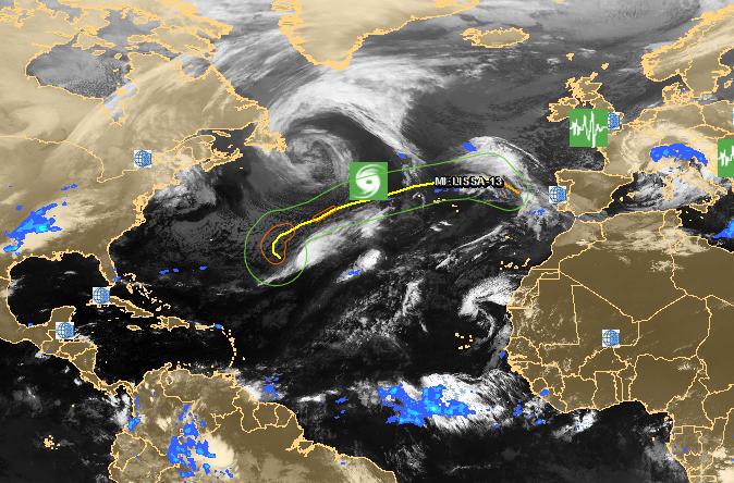 Längsschnitt von Island bis Guinea mit u.a. der sehr bizarren Struktur des Zyklons Melissa im Nordatlantik: